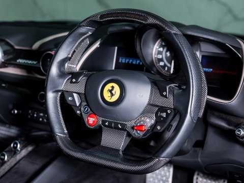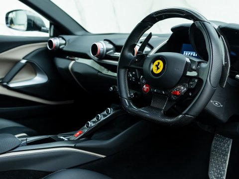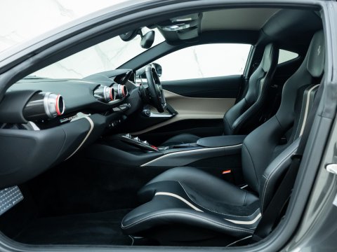 In terms of the chassis, suspension and technology the 812 Superfast feels remarkably similar to the F12tdf, which is no bad thing. Active aerodynamic flaps in the front splitter and the rear diffuser allow the 812 to develop incredible levels of active downforce without the need for a large rear wing ruining the flowing lines of the car. This is coupled with the welcome addition of four-wheel steering, giving the 812 the agility and feeling of a car with a much shorter wheelbase. Other highlight systems which have been evolved include the SSC5 (Side Slip Control 5.0) and Dual Coil MagneRide shock absorbers plus the introduction of an electronically assisted steering rack, allowing for more precise adjustments to steering feel and rate. All these different performance enhancing technologies are constantly working together to provide the optimum driving experience dependent on what mode has been selected through the F1 inspired Manettino race switch. The interior has also been enhanced and restyled over the F12 and remains one of the most driver focused and truly special interiors on the market.
