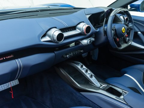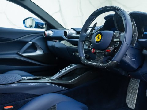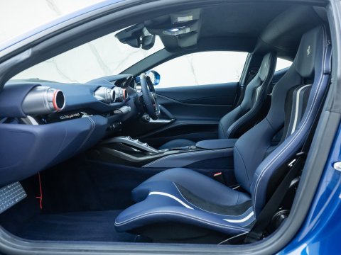 In terms of the chassis, suspension and technology the 812 Superfast feels remarkably similar to the F12tdf, which is no bad thing. Active aerodynamic flaps in the front splitter and the rear diffuser allow the 812 to develop incredible levels of active downforce without the need for a large rear wing ruining the flowing lines of the car. This is coupled with the welcome addition of four-wheel steering, giving the 812 the agility and feeling of a car with a much shorter wheelbase. Other highlight systems which have been evolved include the SSC5 (Side Slip Control 5.0) and Dual Coil MagneRide shock absorbers plus the introduction of an electronically assisted steering rack, allowing for more precise adjustments to steering feel and rate. All these different performance enhancing technologies are constantly working together to provide the optimum driving experience dependent on what mode has been selected through the F1 inspired Manettino race switch. The interior has also been enhanced and restyled over the F12 and remains one of the most driver focused and truly special interiors on the market.