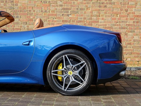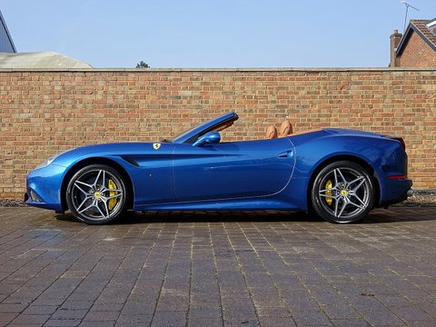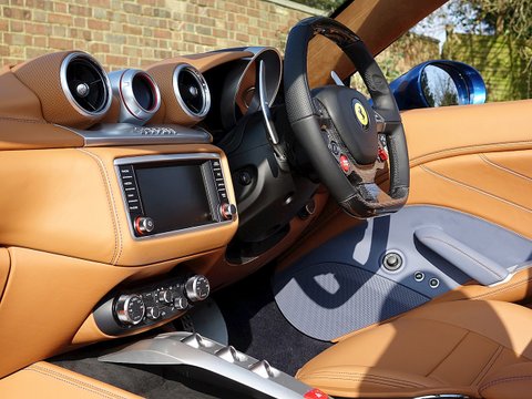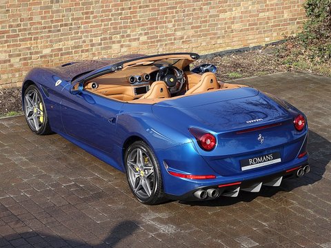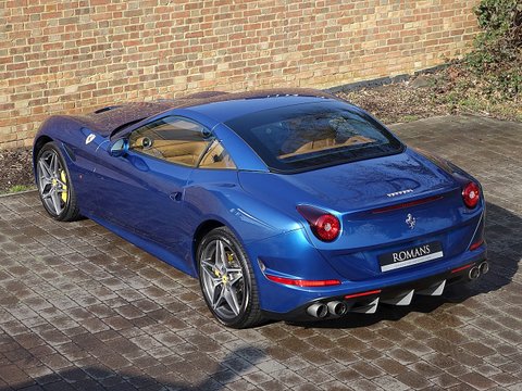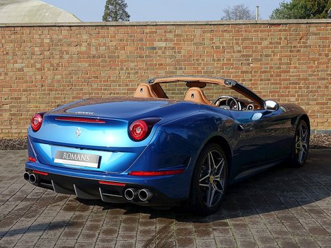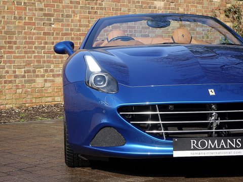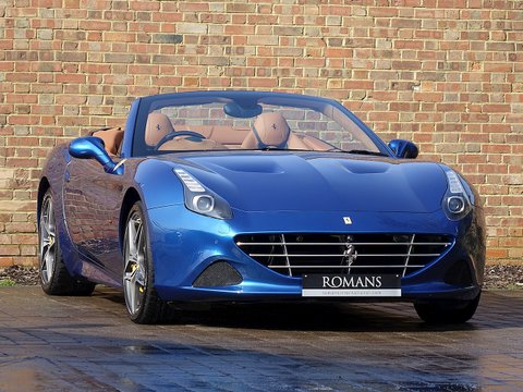 Romans are proud to offer this stunning 2014/64 Ferrari California T for sale presented in a special colour called 'Blu California' with Cuoio Leather Interior. This lovely example is certainly one of the best looking California T's we have had and this car comes with a fantastic specification including the Magneride Dual Mode Suspension, Carbon Fibre Steering Wheel + LEDs and so much more. A fine example that is supplied with Ferrari's 7 Year Free Servicing until December 2021 and Ferrari Manufacturer's Warranty until December 2018.The California T is Ferrari's latest 4 seat grand tourer convertible that offers extreme levels of performance, luxury and comfort. This example comes with a fabulous unique specification with the special exterior paint making it one of the best-looking California T's on the market today. With its 3.9L V8 Twin-Turbo engine, this car accelerates from 0-62 mph in just 3.6 seconds and reaches an astonishing top speed of 196 mph. The California T offers you the best of both worlds, with fantastic performance, luxury, a fantastic V8 soundtrack whilst also offering great levels of practicality and usability with the 4 seat layout.