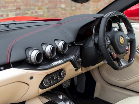 Cutting edge aerodynamics developed from the 599XX and Ferrari F1 programmes were used in the F12, including the Aero Bridges on the front flanks creating down force. In addition, the F12 receives active brake cooling ducts, opening when the brakes are hot to provide a flow of cold air and otherwise remaining closed to help with smoother air flow around the front bumper. This car then, has the brains to back up the brawn of that epic V12. Overall the Ferrari F12 Berlinetta provides beautiful Italian styling, exhilarating performance and an intoxicating exhaust note, all characteristics that set this car up as a highly collectible, future classic, Ferrari.
