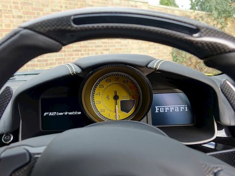 Ā Romans are proud to offer this 2013/13 Ferrari F12 Berlinetta for sale presented in 'Giallo Modena' with Nero Leather Interior. This example comes with a host of options including the Carbon Fibre Driver Zone + LEDS/, Carbon Fibre Rear Diffuser much more.This F12's Giallo Modena Exterior colour is breath-taking in all shades of light. The car has a fantastic contrast firstly set off by the beautiful 20" Forged gloss black alloys/, Black outer mirror inserts and exterior carbon fibre elements. Step inside the interior and you are greeted with Nero diamond quilted seats with special stitching 'Filo Speciale Giallo' along with 'Cinture Giallo' seat belts which is a fantastic contrast to the exterior colour. The F12 is one of the most exciting cars to drive and we are delighted to offer this extraordinary example for sale.