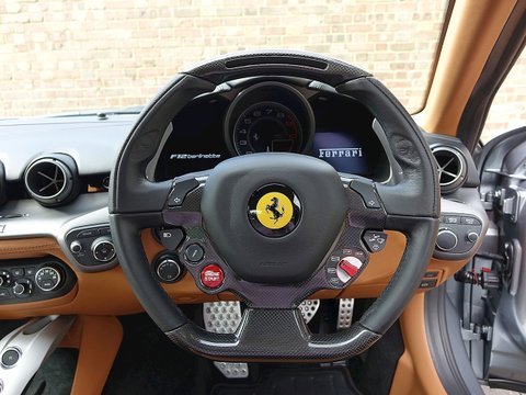 Ā Romans are delighted to offer this beautiful 2013/13 Ferrari F12 Berlinetta for sale presented in 'Grigio Titanio' Metallic with Cuoio Leather Nero Alcantara. This example is one of the prettiest F12's we have had and comes with all the desirable options you could want including the all-important Suspension Lifter/, the beautiful Carbon Fibre Steering Wheel + LED's and plenty more. Furthermore/, this car comes with an Extended Ferrari Manufacturer's Warranty until March 2018 as well as Ferrari's 7 Year Free Servicing Package until March 2020. A spectacular car that is in a truly immaculate condition and is the perfect modern day grand tourer.Ā The Ferrari F12 Berlinetta is one of our favourite cars. From the intoxicating V12 engine to the astonishing beautiful Italian design/, the F12 is the car that truly gets your blood racing. It will look good crusing the beautiful streets of Monaco but at the push of the Manettino switch to Race and the car is totally transformed to being one of the most agile and best driver's cars in the world. It is the best of both worlds since you can fit a full set of luggage in the back and travel in absolute comfort and luxury. This car comes with the beautiful Daytona seats which are not only comfortable to sit in but gorgeous to look at.