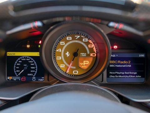 Berlinetta directly translates as ālittle saloonā, this car is certainly not a saloon, but the name is fitting as the Ferrari F12 Berlinetta is a ālittlerā car than its predecessor the 599 GTB. Thanks to this slightly smaller stature and an aluminium space frame chassis, developed in partnership with Scaglietti, the kerb weight and centre of gravity have been lowered significantly, helping towards this carās spectacular performance figures.
