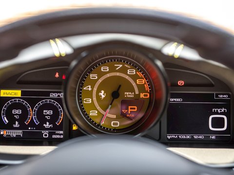 Cutting edge aerodynamics developed from the 599XX and Ferrari F1 programmes were used in the F12, including the Aero Bridges on the front flanks creating down force. In addition, the F12 receives active brake cooling ducts, opening when the brakes are hot to provide a flow of cold air and otherwise remaining closed to help with smoother air flow around the front bumper. This car then, has the brains to back up the brawn of that epic V12. Overall the Ferrari F12 Berlinetta provides beautiful Italian styling, exhilarating performance and an intoxicating exhaust note, all characteristics that set this car up as a highly collectible, future classic, Ferrari.