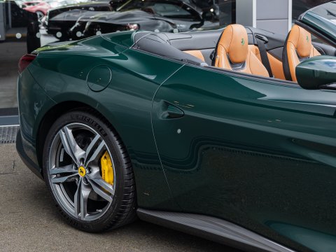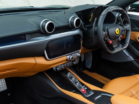 Named after the picturesque and glamorous fishing village located on the Italian Riviera, the Portofino is Ferrariās new entry-level model and the replacement for the California. This is not however just a facelifted and rebadged California but instead has been redesigned from the ground up, sitting on a totally new chassis. The Portofino weighs in 80kg lighter than the California and yet is more powerful with a heavily revised version of the 3.9L Twin-Turbo V8 now producing nearly 600bhp. This weight reduction and added power makes the Portofino capable of shooting from 0 to 62mph in 3.5s and a top speed tantalisingly close to the magic 200mph mark. The hardtop roof can be raised or lowered at up to 30mph taking just 14 seconds to complete the transformation. Once the roof is down the Portofino gives a more comfortable ride with 30% less air flow entering the cabin in comparison with the California, the climate control system has also undergone a thorough redesign to offer more cooling and heating when needed with the roof down.