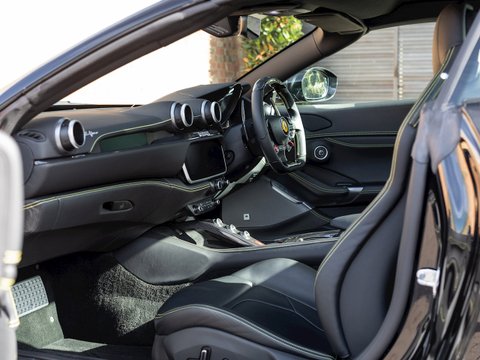 Named after the picturesque and glamorous fishing village located on the Italian Riviera, the Portofino is Ferrariās new entry-level model and the replacement for the California. This is not however just a facelifted and rebadged California but instead has been redesigned from the ground up, sitting on a totally new chassis. The Portofino weighs in 80kg lighter than the California and yet is more powerful with a heavily revised version of the 3.9L Twin-Turbo V8 now producing nearly 600bhp! This weight reduction and added power makes the Portofino capable of shooting from 0 to 62mph in 3.5s and a top speed tantalisingly close to the magic 200mph mark. The hardtop roof can be raised or lowered at up to 30mph taking just 14 seconds to complete the transformation. Once the roof is down the Portofino gives a more comfortable ride with 30% less air flow entering the cabin in comparison with the California, the climate control system has also undergone a thorough redesign to offer more cooling and heating when needed with the roof down.