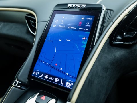The interior of the Roma is where Ferrari have taken things up another level and whilst this remains a driver focused cabin it's clear that the updated technology and infotainment has become increasingly important, which is understandable with the Roma being one of the most usable and accessible Ferrari's in the model range. The centre console seemingly engulfs the driver, wrapping all the way around the dash and joining with the door cards whilst the traditional instrument dials have been replaced with a digital dash and the centre console boasts a newly-designed screen encompassing various features and optional extras.