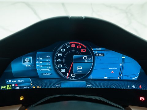 The interior of the Roma is where Ferrari have taken things up another level and whilst this remains a driver focused cabin it's clear that the updated technology and infotainment has become increasingly important, which is understandable with the Roma being one of the most usable and accessible Ferrari's in the model range. The centre console seemingly engulfs the driver, wrapping all the way around the dash and joining with the door cards whilst the traditional instrument dials have been replaced with a digital dash and the centre console boasts a newly-designed screen encompassing various features and optional extras.