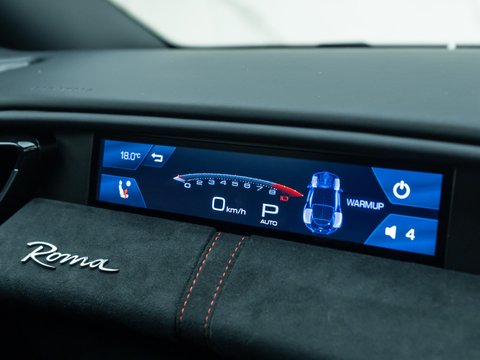 The interior of the Roma is where Ferrari have taken things up another level and whilst this remains a driver focused cabin it's clear that the updated technology and infotainment has become increasingly important, which is understandable with the Roma being one of the most usable and accessible Ferrari's in the model range. The centre console seemingly engulfs the driver, wrapping all the way around the dash and joining with the door cards whilst the traditional instrument dials have been replaced with a digital dash and the centre console boasts a newly-designed screen encompassing various features and optional extras.