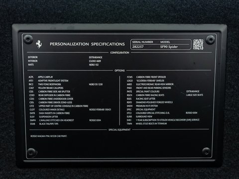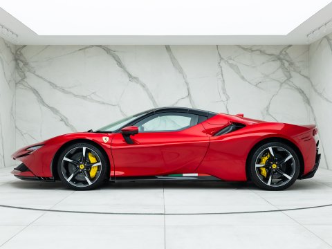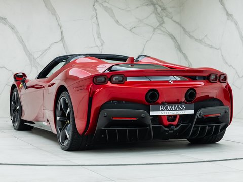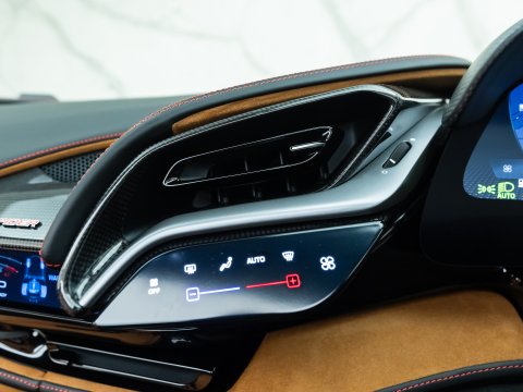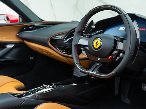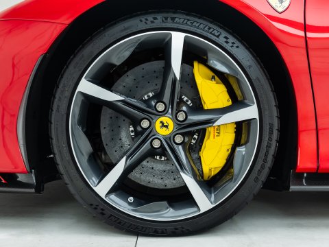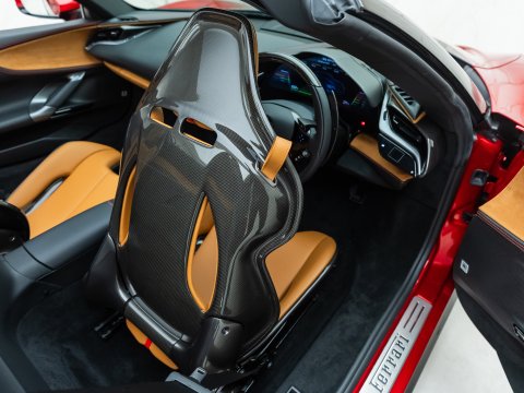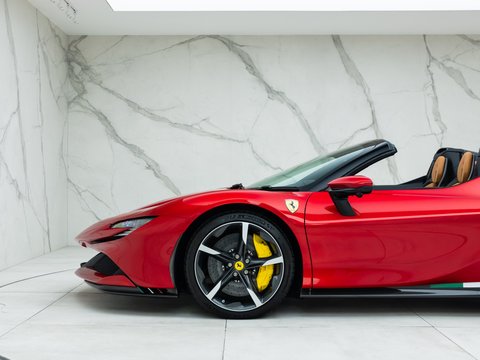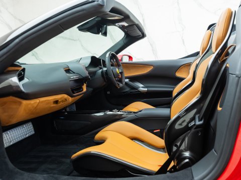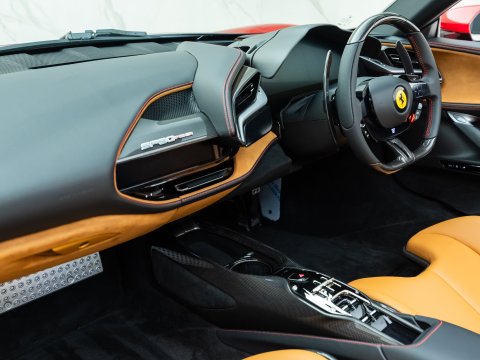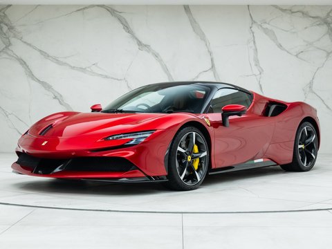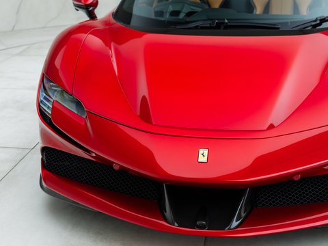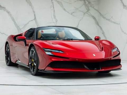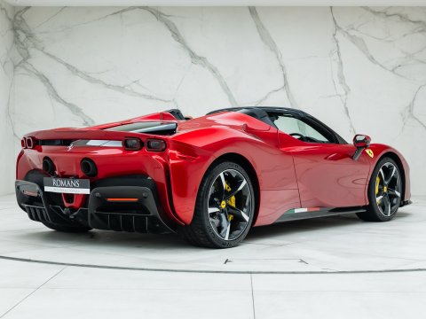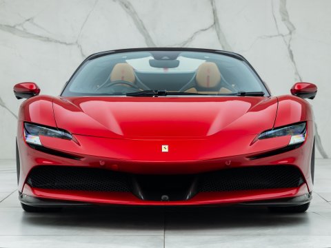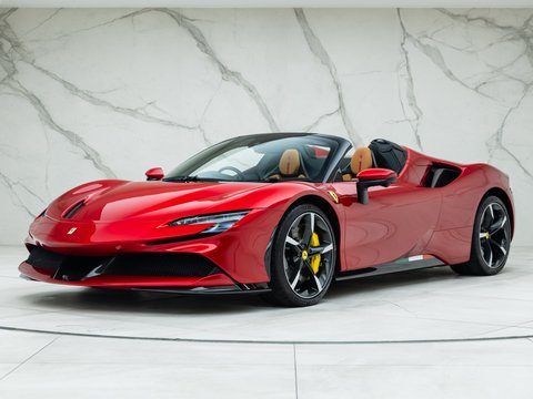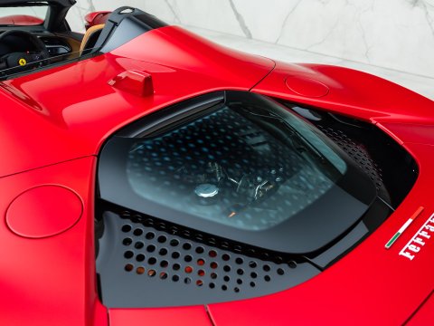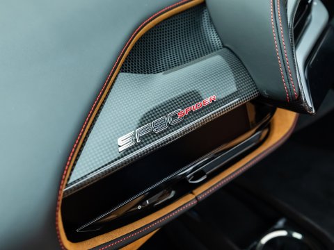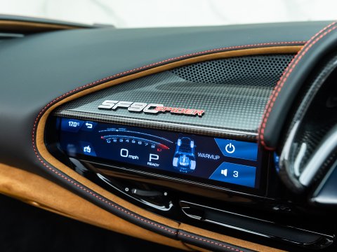 The Ferrari SF90 Spider follows closely in the footsteps of the SF90 Stradale which has been a truly ground-breaking car for the legendary Italian car marque. Like many other convertible Ferrari's they use a hard top folding roof which flips back and seamlessly fits into the section behind the seats. Performance is near identical to that of the coupe with the same ridiculously quick 0-62mph time (2.5 secs), same power (986bhp) and 211mph top speed. It is truly staggering performance rivalling most hypercars on sale today and by adding open air thrills into the mix Ferrari have created a truly visceral drop-top driving experience. Being a hybrid comprising of a 4.0L twin-turbo V8 and no less than 3 electric motors, there is four driving modes (eDrive, Hybrid, Performance, Qualify), ranging from a silent fully electric mode good for 15 miles through to a hot-lap mode deploying the full nigh on 1000hp through all 4 wheels.