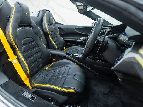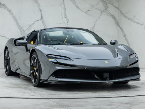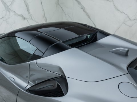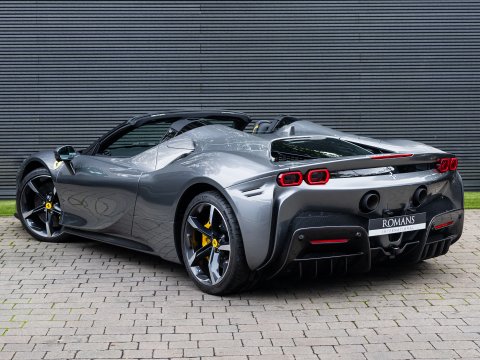 The Ferrari SF90 Spider follows closely in the footsteps of the SF90 Stradale which has been a truly ground-breaking car for the legendary Italian car marque. Like many other convertible Ferrari's they use a hard top folding roof which flips back and seamlessly fits into the section behind the seats. Performance is near identical to that of the coupe with the same ridiculously quick 0-62mph time (2.5 secs), same power (986bhp) and 211mph top speed. It is truly staggering performance rivalling most hypercars on sale today and by adding open air thrills into the mix Ferrari have created a truly visceral drop-top driving experience. Being a hybrid comprising of a 4.0L twin-turbo V8 and no less than 3 electric motors, there is four driving modes (eDrive, Hybrid, Performance, Qualify), ranging from a silent fully electric mode good for 15 miles through to a hot-lap mode deploying the full nigh on 1000hp through all 4 wheels.