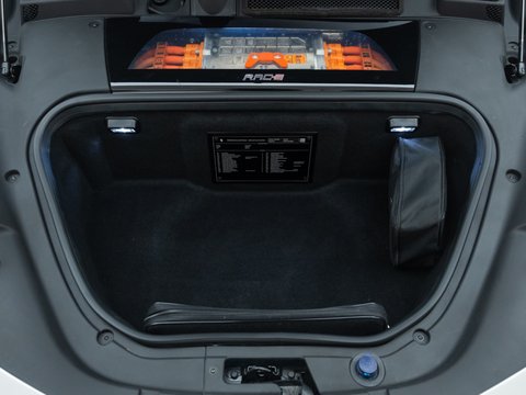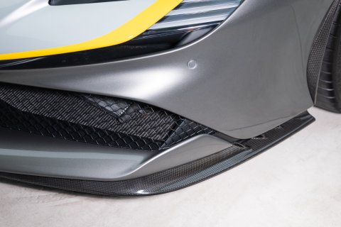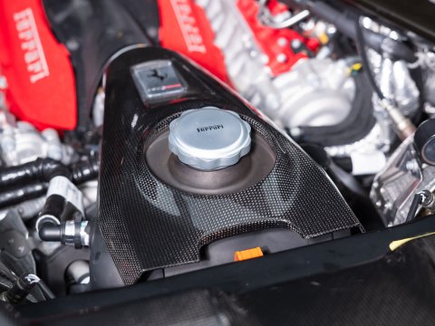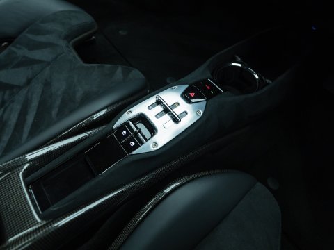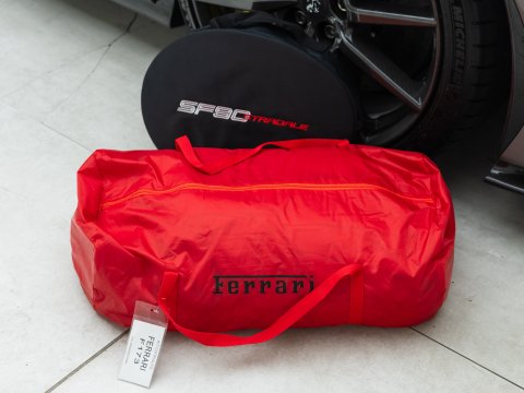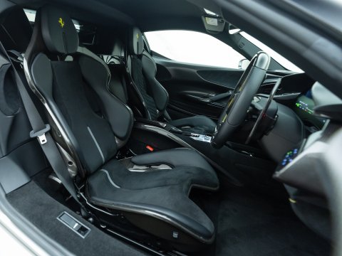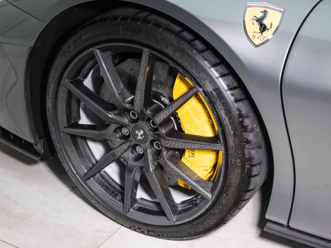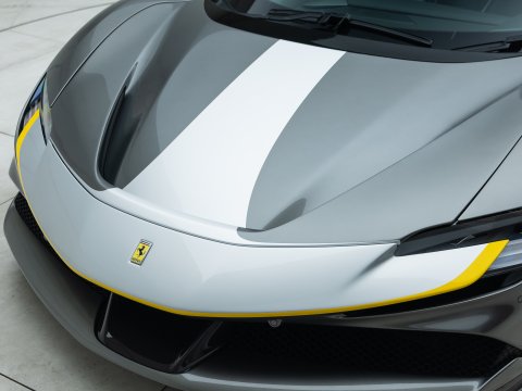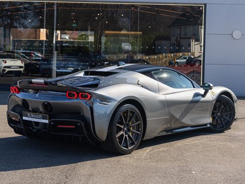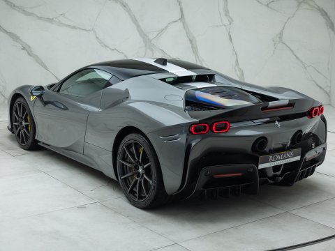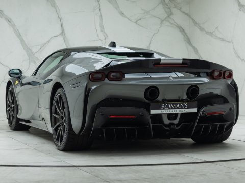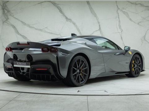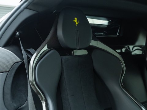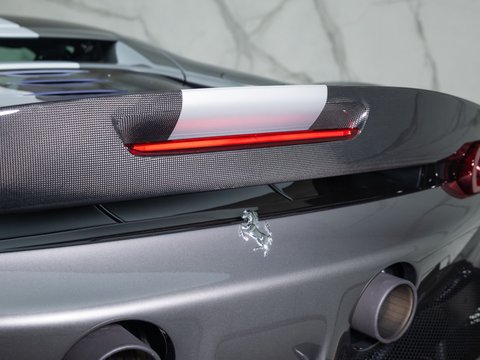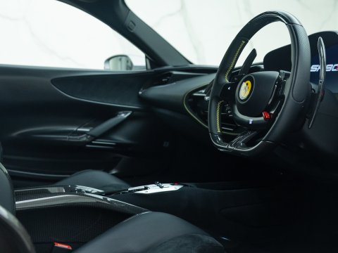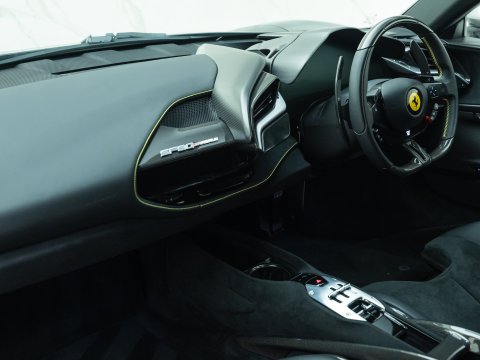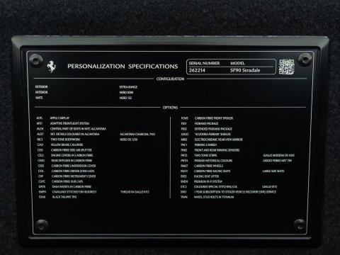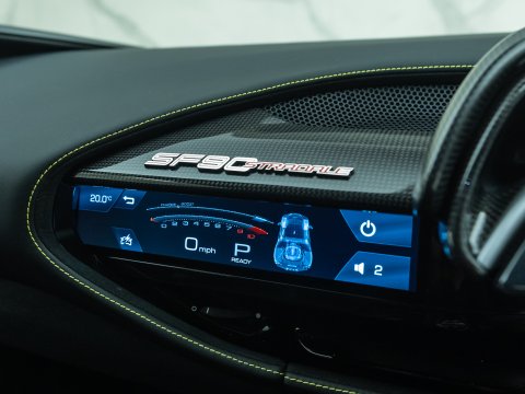 This particular example is the Assetto Fiorano spec, which is the more track focused variant of the SF90. This specification features upgrades such as the Multimatic Shock Absorbers, Full Titanium Exhaust and various other carbon fibre and titanium components. Carbon fibre can be found on the door panels and underbody with titanium being used for the springs and exhaust system. These upgraded components result in a weight-saving of 30 kg over the standard SF90 Stradale. A high downforce carbon fibre rear spoiler is also added with the Asseto Fiorano package, which generates an additional 390 kg of downforce at 155mph.
