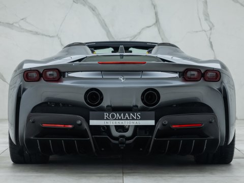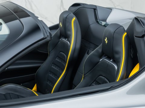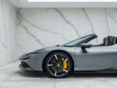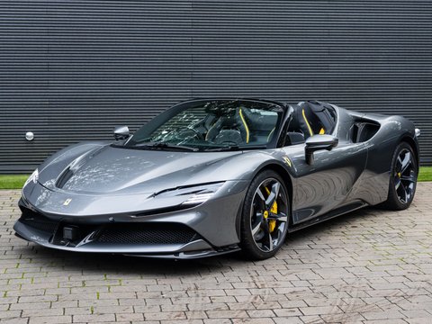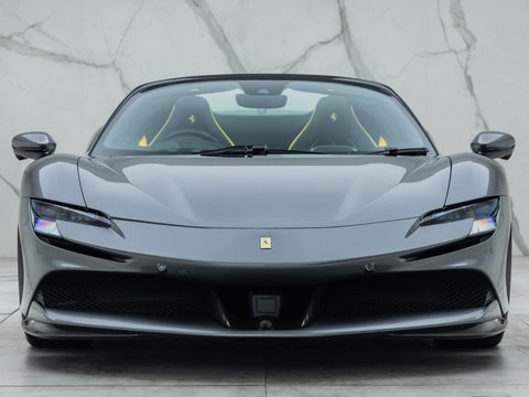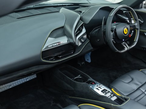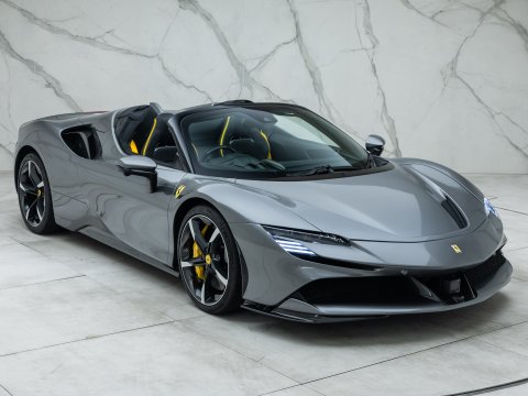 The Ferrari SF90 Spider follows closely in the footsteps of the SF90 Stradale which has been a truly ground-breaking car for the legendary Italian car marque. Like many other convertible Ferrari's they use a hard top folding roof which flips back and seamlessly fits into the section behind the seats. Performance is near identical to that of the coupe with the same ridiculously quick 0-62mph time (2.5 secs), same power (986bhp) and 211mph top speed. It is truly staggering performance rivalling most hypercars on sale today and by adding open air thrills into the mix Ferrari have created a truly visceral drop-top driving experience. Being a hybrid comprising of a 4.0L twin-turbo V8 and no less than 3 electric motors, there is four driving modes (eDrive, Hybrid, Performance, Qualify), ranging from a silent fully electric mode good for 15 miles through to a hot-lap mode deploying the full nigh on 1000hp through all 4 wheels.