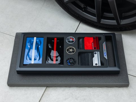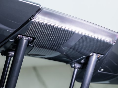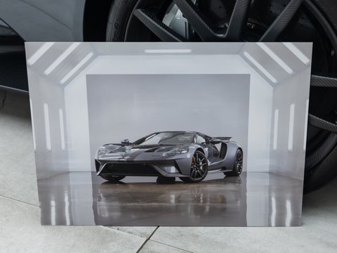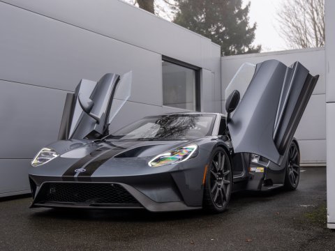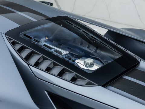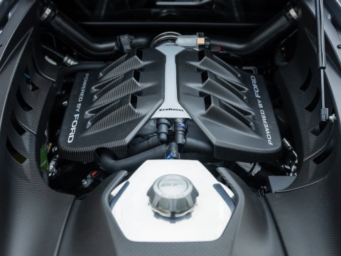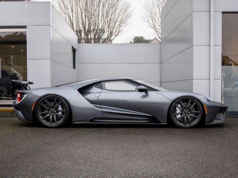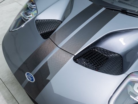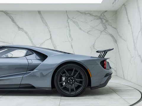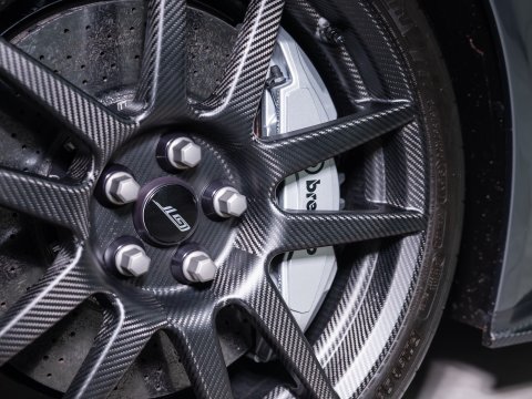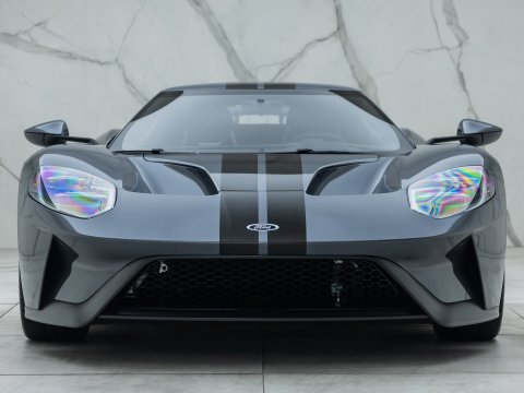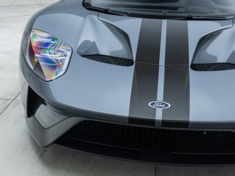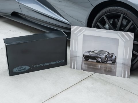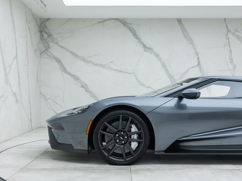 With a much stronger focus on aerodynamics and performance the new Ford GT is built on a bespoke carbon fibre tub and houses a 3.5L twin-turbocharged EcoBoost V6 and dual clutch transmission which is integrated within the rear suspension. Motorsport engineering encompasses the new Ford GT sharing key design elements from some of the fastest racers in F1 and Le Mans. This particular 'Carbon Series' edition includes options such as carbon fibre wheels and carbon fibre interior trim.