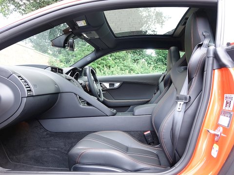 Romans are pleased to offer this exceptional 2015/65 Jaguar F-Type V6Ā SĀ Coupe for sale presented in 'Firesand' Metallic with Black Leather Interior. This 1 owner vehicle comes with some fantastic optional extras including the beautiful Performance Seats with Premium Leather and the Sport Design Pack with Black Pack. A fine example which comes supplied with Jaguar Manufacturer's Warranty until September 2018.