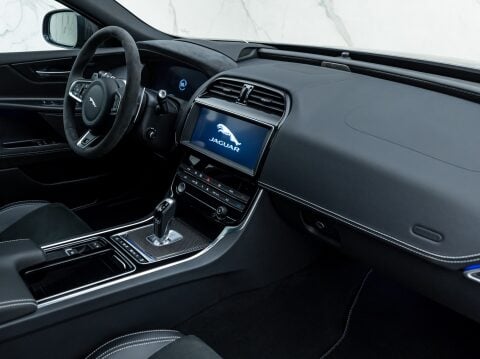 Despite dialling the XE up to eleven and getting a Hulk inspired Jaguar as a result, the Project 8 is not only road-legal, but performs just as well on a Sunday drive as it does round the Nürburgring. The active dampers paired with some serious grip from the massive tyres and aerodynamics make the Project 8 a surprisingly usable road car. The new rear wing, splitter, and diffuser contribute to reducing lift by 205%, with 122kg of downforce at 186mph. The intelligent 4-wheel drive system keeps the car stable even in damp conditions, whilst still allowing you to swing the back end out and enjoy some more spirited driving when the conditions and your bravery call for it. Despite its brutal demeanour, the car is equipped with plenty of creature comforts like cruise control, ambient lighting, Apple CarPlay and Android Auto, and a 10.2-Inch Touchscreen infotainment system, all connected to a Meridian Sound System.