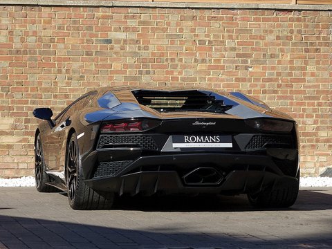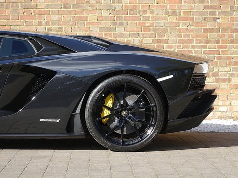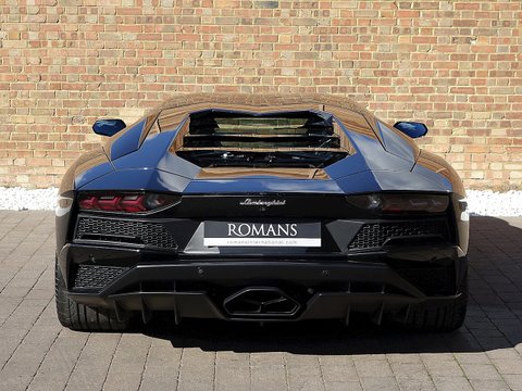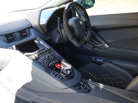 Romans are delighted to offer this exceptional 2017/17 Lamborghini Aventador S for sale presented in 'Nero Pegaso' with Nero Alcantara with Yellow Contrast Stitching. This 1 owner example comes with a fantastic specification including the Interior Carbon Fibre Package, the beautiful Transparent Engine Bonnet and plenty more. A fine example that is supplied with Lamborghini Manufacturer's Warranty until July 2020.Ā Taking cues from the Aventador SV, the Aventador S has been given an exterior makeover and underneath it's chassis and drivetrain have been thoroughly re-engineered. Changes over the standard Aventador include the new front bumper and splitter, rear diffuser, rear wing, new exhaust that is 20% lighter than before and cracks and pops more than ever, new rear wheel steering, revised suspension and increased power from 690 bhp to 730 bhp. Inside the Aventador S has a new TFT display with Apple Carplay included as standard. This RHD UK Supplied example is physical to purchase today and beat the waiting list.