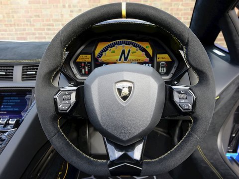 Romans are proud to offer this outstanding 2016/66 Lamborghini Aventador LP750-4Ā SV Roadster for sale presented in 'Blue Nethuns' Metallic with Nero/Giallo LeatherĀ andĀ Alcantara Interior. This stunning vehicle come's with a fantastic specification and has to be one of the best looking examples currently on the market.Being 1 of 500 examples worldwide, the Superveloce has been designed toĀ be the sportiest Lamborghini ever, theĀ fastest and most electrifyingĀ of all time, thanks toĀ a further improved naturally aspirated V12Ā engine, engineering solutions geared to extreme lightness and a mix of innovative technological featuresĀ such as the magnetorheological push-rod suspension and the Lamborghini Dynamic Steering system.