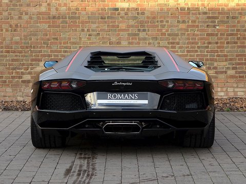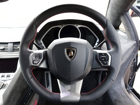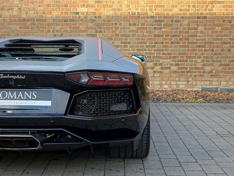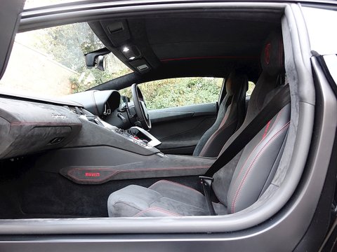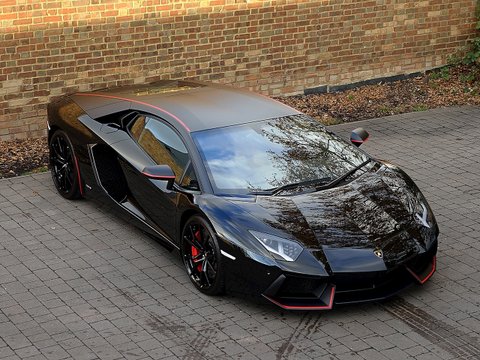Romans are proud to offer this stunning 2015/15 Lamborghini Aventador LP700-4 Pirelli Edition for sale presented in 'Nero Aldebaran/NeroNemisis' with Nero Ade Alcantara. This 1 owner vehicle comes with a lovely specification and is supplied with Lamborghini Manufacturer's Warranty Until July 2018.The exterior sports a two-tone colour scheme in two options. The first is matte black for the Roof, Pillars, Rear View Mirrors, Rear Side Moving Intakes. In contrast the Perelli Edition comes avalible with Six Gloss Finishes for the body with this one being avalible comeing in Nero Aldebaran. The second option is Gloss Black for the upper parts of the car and side intakes, in contrast with Nero Nemesis matte finish for the rest of the exterior.Another distinctive element of the body is a thin red stripe that runs along the roof and the engine hood, rear view mirrors outer profiles of the air intakes. This is a stylistic feature designed to evoke the unmistakable Pirelli branding. The Pirelli logo once again in red is visible at the start of the tow-tone roof lines and on the tyres.The interior of the Aventador Pirelli Edition is upholstered with Black Alcantara with Red contrast stitching. The red stripe on the body is also repeated on the inside, running along the interior ceiling and the seats which feature the Lamborghini and Pirelli crest embroidered in red. Leather inserts adorn the door panels and the seat sides. Finally to underscore its exclusiveness, each car will have a 'Pirelli Special Series' Plaque inside.