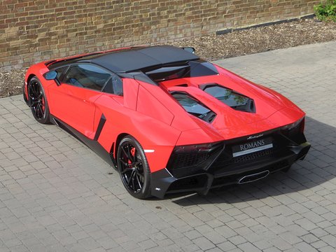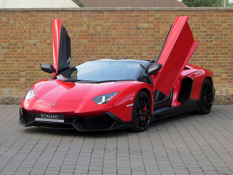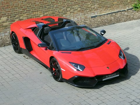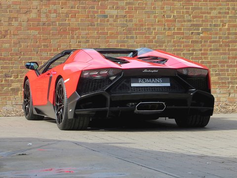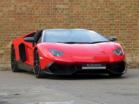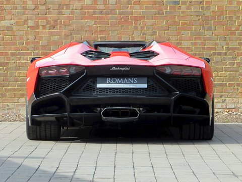 Romans are proud to offer this breathtakingly beautiful 2014/14 Lamborghini Aventador Roadster LP720-4 50th Anniversary for sale presented in 'Rosso Mars' with Nero Ade Alcantara with Rosso Stitching.Limited to only 100 examples worldwide and this being model number 76/100; this spectacular car was built to commemorate the 50th Anniversary of Automobili Lamborghini. Key features that distinguish this car over a standard Aventador Roadster include a 20bhp power upgrade from 690bhp to 710bhp/, an exclusive aerodynamic package that features wider and larger air intakes/, big side flaps and splitter; whilst the rear has a large diffuser that Lamborghini calls "expansive meshwork". These significant cosmetic changes all result in a 50% increase in aerodynamic efficiency and engine compartment ventilation. Step inside and you are greeted with an exquisite Q-Citura diamond stitched alcantara interior.
