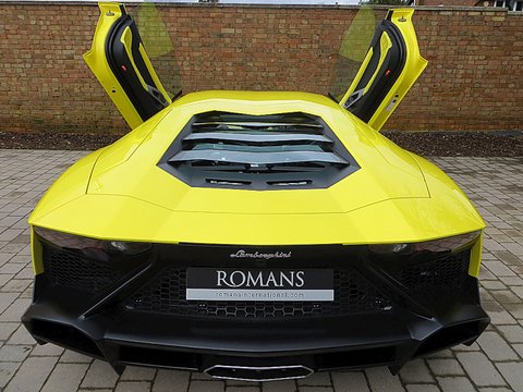 Romans are proud to offer this Lamborghini Aventador LP720-4 50th Anniversary for sale. Limited to 100 coupes and 100 roadsters worldwide the 50th anniversary edition features an increase in power of 20bhp over the standard Aventador and includes a bodykit inspired from the Lamborghini Veneno while there is Q-citura diamond stitched leather throughout the interior.