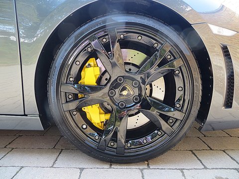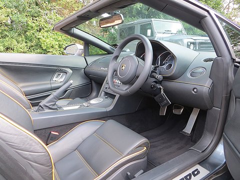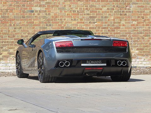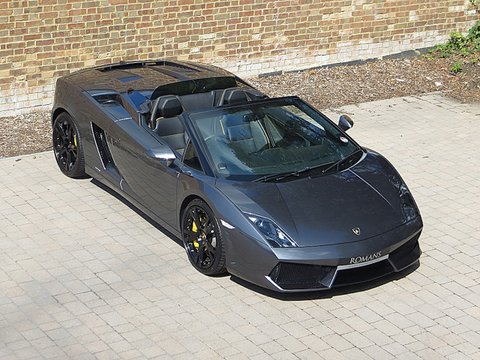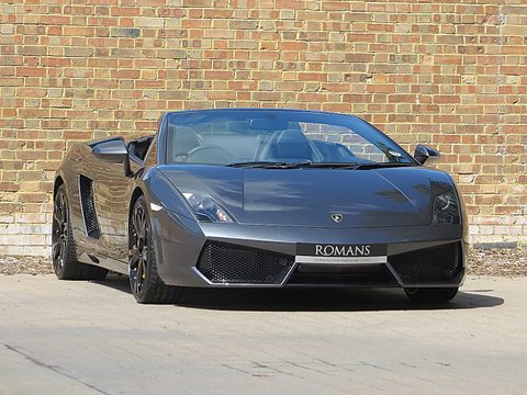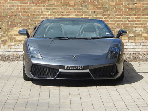 Ā Romans are proud to offer this 2010/10 used Lamborghini Gallardo LP560-4 Spyder for sale presented in the stunning rare Grigio Lynx metallic paint with black leather and yellow stitching.