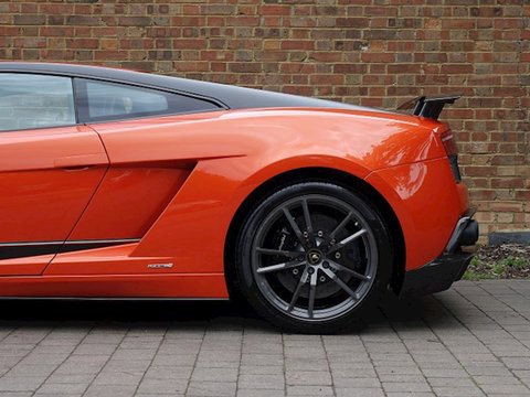 Ā Romans are delighted to offer this exceptional 2013/13 Lamborghini Gallardo LP570-4 Superleggera Edizione Tecnica presented in 'Arancio Argos' with Nero Alcantara Interior. This example recently had an end of warranty health check in April with no issues and has virtually done no miles since. Furthermore/, this car comes with highly desirable optional extras such as the important Sport Lifting System/, the beautiful Interior Carbon Fibre Package and more. A fine example that is in a truly immaculate condition and must be one of the best on the market.Ā The LP570-4 Edizione Tecnica was based on the LP570-4 Superleggera and the LP570-4 Spyder Performante/, with large aerodynamic carbon fibre rear air diffuser/, fixed carbon fibre high rear wing/, carbon ceramic brakes and the roof arch and front air intakes painted in contrasting colour schemes. The four exhausts are clearly visible thanks to a ceramic coating.Ā The Gallardo Superleggera Edizione Tecnica is a stylish/, sophisticated design directly inspired by the Super Trofeo Championship racing cars. Created by removing approximately 100 kg of weight from the Gallardo coupe/, this model looks like a car designed for race tracks brought straight to the road. Boasting an unbelievably low power-to-weight-ratio and an acceleration of 0 to 100km/h in just 3.8 seconds/, this Edizione Tecnica is incredibly quick and visceral. With a more determined lightweight design/, focus on the high performance and with an overall purist look; the Gallardo Superleggera Edizione Tecnica marks the very pinnacle of the Gallardo family.Ā