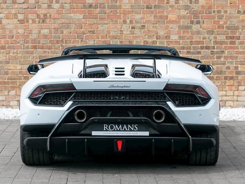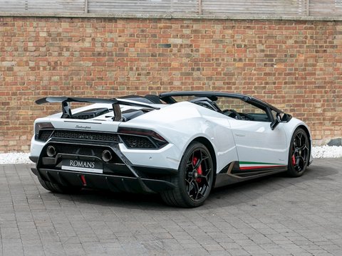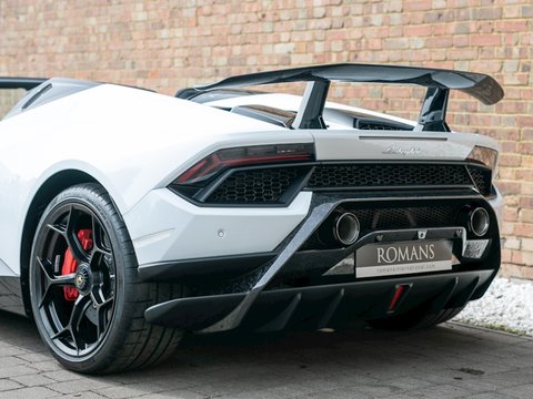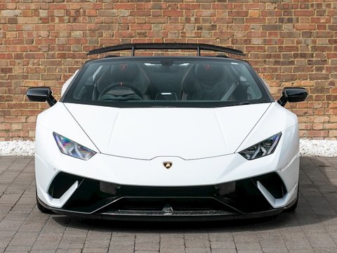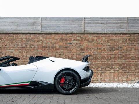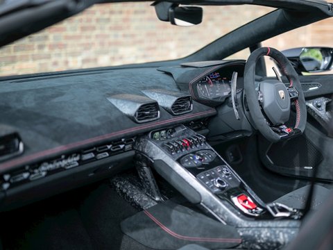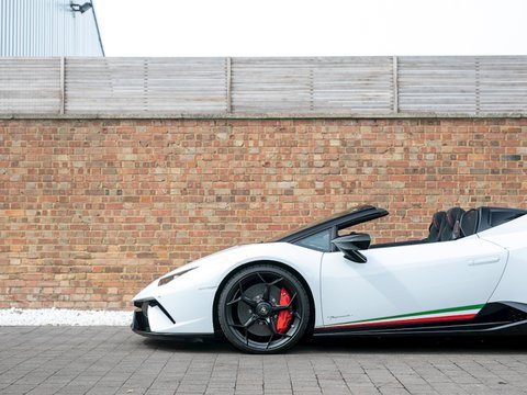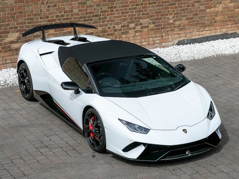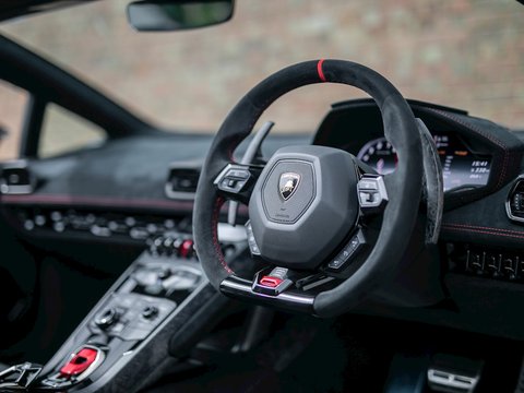 A 35kg weight saving and power up to 631bhp, combined with far more aggressive styling and carbon composite parts give the Performante Spyder rarely surpassed presence and drama. The convertible roof on the spyder lowers neatly at speeds of up to 31mph and adds a greater sense of speed, occasion and connection with that howling V10. Revving out to 9000rpm in this car with the roof down is nothing short of awe inspiringly addictive and when in āSportā or āCorsaā mode, this certainly is a car where you will hear it well before you see it.
