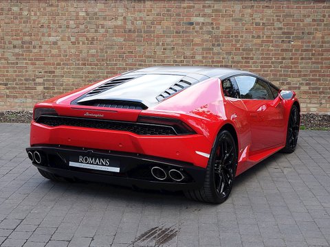 Romans are delighted to offer this stunning 2014/64 Lamborghini Huracan LP610-4 for sale presented in 'Rosso Mars' with Nero Ade Rosso Alala Leather Alcantara. This lovely example comes with a fantastic specification including the all-important Lifting System, Magneto-Rheologic Suspension so much more. Furthermore, this vehicle has just been serviced by Lamborghini and is supplied with Lamborghini Manufacturer's Warranty until December 2018.We believe this to be one of the best looking Huracan's we have hadĀ in stock.Ā We love the wrapped Matt Black Roof which contrasts beautifully with the Rosso Mars paint work. The wrap can be removed upon request.