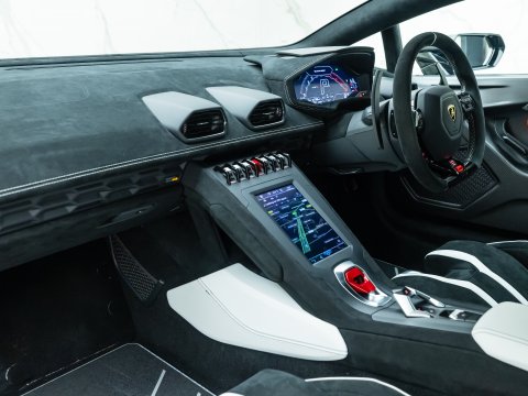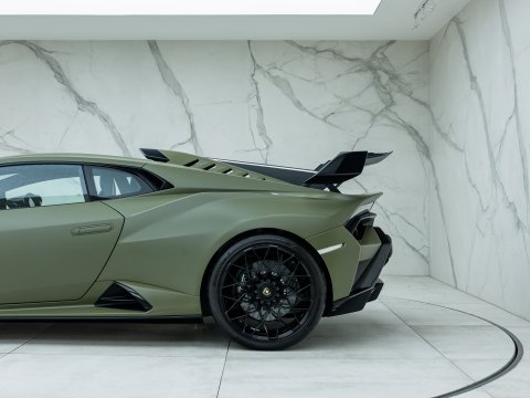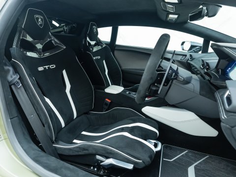 The STO differs from the Performante as it is purely rear-wheel drive, and now comes with rear-wheel steering. Multiple changes have been made in order to save weight, including a thinner windscreen, optional magnesium wheels and carbon body panels. The, not so subtle, aero, including a manually adjustable rear wing, has increased downforce by 53% compared to the Performante.