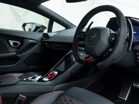 Introduced in 2019, the Huracán EVO harnesses some of the latest and greatest modern technology and features on offer from Lamborghini. From the aerodynamics and powertrain to the multimedia interface Lamborghini have revised and re-engineered, bringing the EVO up to date. The new HMI (Human-Machine Interface) provides a new and simple way to access and navigate the different driving dynamics and entertainment functions onboard the EVO. The new information system incorporates an updated telemetry system with two cameras in order to track and improve your driving skills, on the track of course.