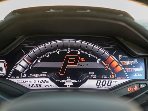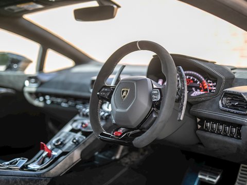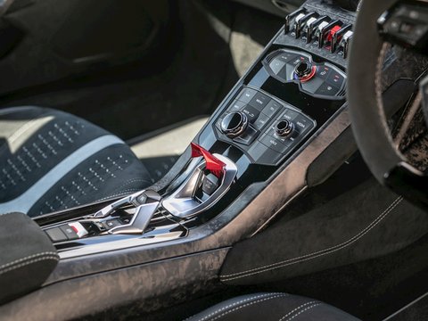 A 35kg weight saving and power up to 631bhp, combined with far more aggressive styling and carbon composite parts give the Performante Spyder rarely surpassed presence and drama. The convertible roof on the spyder lowers neatly at speeds of up to 31mph and adds a greater sense of speed, occasion and connection with that howling V10. Revving out to 9000rpm in this car with the roof down is nothing short of awe inspiringly addictive and when in āSportā or āCorsaā mode, this certainly is a car where you will hear it well before you see it.