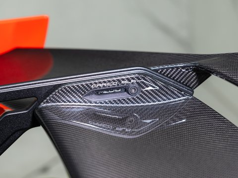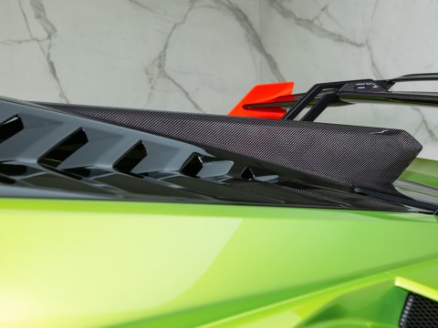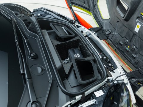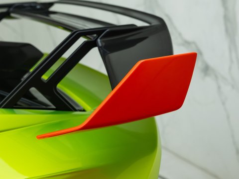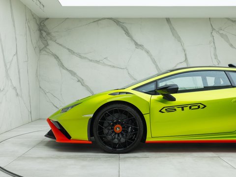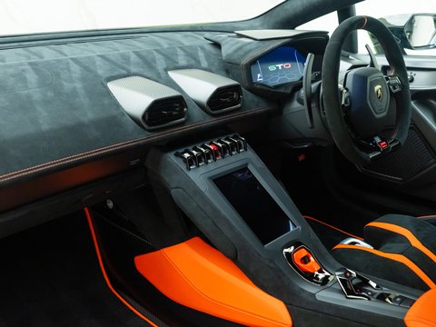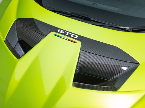 The STO differs from the Performante as it is purely rear-wheel drive, and now comes with rear-wheel steering. Multiple changes have been made in order to save weight, including a thinner windscreen, optional magnesium wheels and carbon body panels. The, not so subtle, aero, including a manually adjustable rear wing, has increased downforce by 53% compared to the Performante.