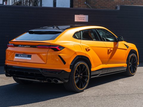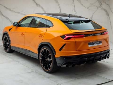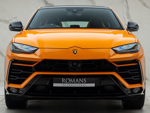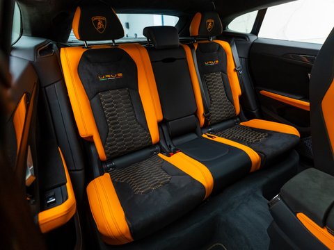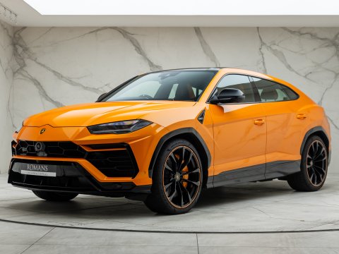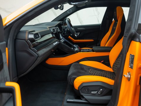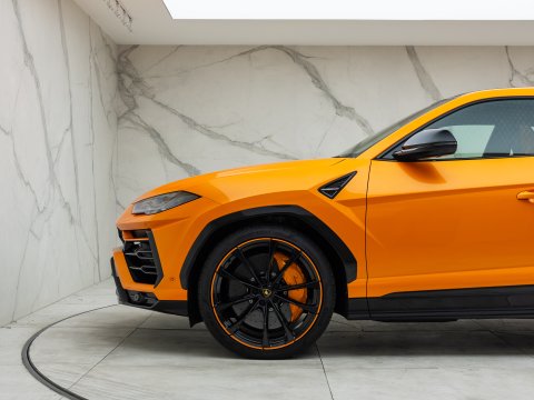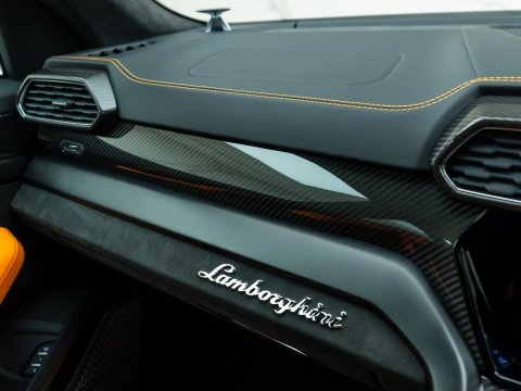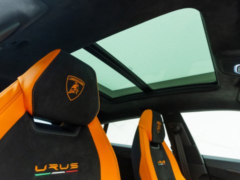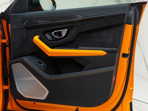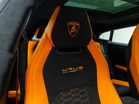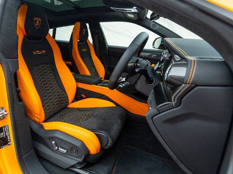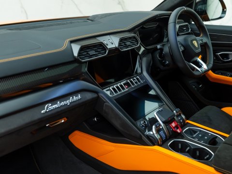 This special edition of the Lamborghini Urus is defined by a striking pearl effect exterior finish, contrasting with gloss-black details, with this example having the Arancio Borealis paintwork. The Pearl Capsule also features an upgraded interior over the standard Urus which mirrors this dynamic contrast, featuring Alcantara upholstery, carbon-fibre trims, and with stitching and piping maintaining the theme from the exterior.
