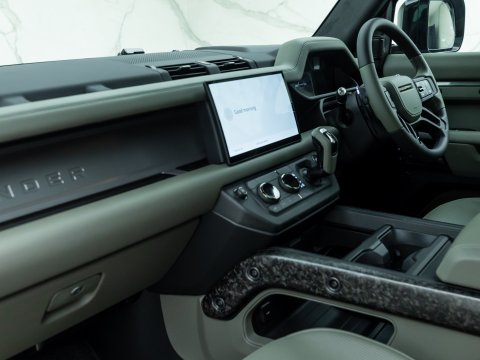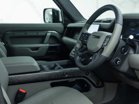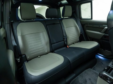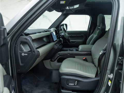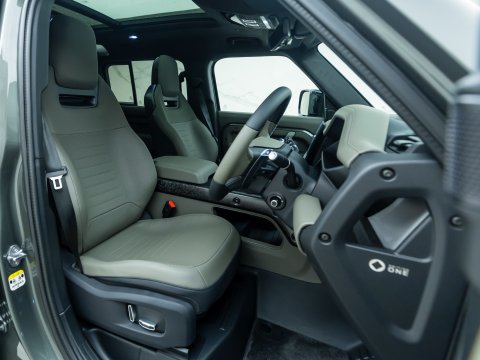 The Land Rover Defender OCTA Edition One is the high-performance flagship of the Defender 110 lineup - limited to its first production year. Under its bonnet is a BMW-sourced 4.4 L twin‑turbo mild‑hybrid V8, delivering 626 bhp and up to 750 Nm of torque, enough to sprint from 0–62 mph in 4.0 seconds - the fastest Defender ever. To harness that power, Land Rover fitted the OCTA with an advanced 6D Dynamics hydraulic suspension, a raised ride height, widened track, extended wheel arches to house massive 33-inch all-terrain tyres, and beefed-up underbody protection. The Edition One adds exclusive visual flair - Faroe Green paint, chopped carbon‑fibre accents, and Khaki/Ebony 3D‑knit Ultrafabrics interior trim with new “Body & Soul” performance seats that deliver immersive audio plus wellness programmes. In essence, the Defender OCTA Edition One blends wild off-road capability, blistering on-road pace, and luxury detailing - making it the most extreme, most exclusive Defender to date.