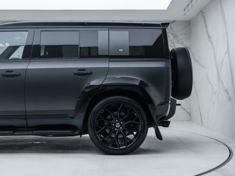 The Carpathian Edition represents a limited-run flagship variant of the V8 Defender and is no longer available to order. Mechanically identical to the standard V8, it distinguishes itself through a bespoke styling package finished in premium Carpathian Grey metallic paint, overlaid with a Satin Paint Protection Film that both preserves and enhances its presence. Gloss black accents across the bonnet, wheels and exterior detailing complete the look, giving the Carpathian Edition a stealthy, almost military-inspired stance that perfectly suits the Defender’s rugged character.