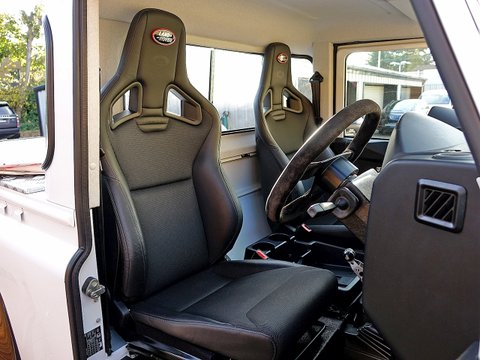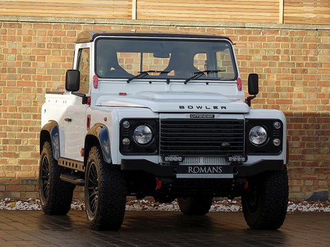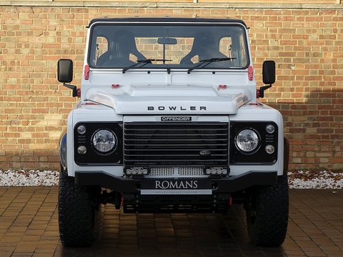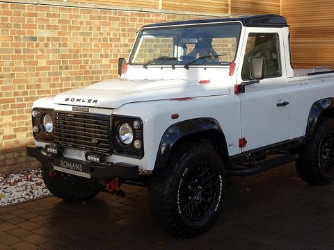 Romans are delighted to offer this extraordinary 2014/14 Land Rover Defender Bowler Edition for sale presented in 'Fuji White' with Black Leather Interior. This example comes with extensive Bowler upgrades from the Bowler Stage 1 Engine Tune which brings the power up to 170 bhp and 450 nm of torque, to the Bowler Fast Road Suspension System and the fantastic looking Bowler Motorsport Gear Selector and MOMO Steering Wheel. Furthermore, this car will be supplied with a fresh service from Land Rover prior to sale. A truly unique example with the flat bed at the back making it extremely practical if materials need to be carried around. Bowler is a market leader in the production of racing and high performance all-terrain vehicles and have been since 1985. Based in Derbyshire in the UK, Bowler use both technology and craftsmanship to deliver vehicles with style, strength, performance and an unrivalled spirit of adventure.Â