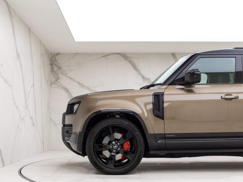 Gondwana Stone Solid Paint with Ebony & Vintage Tan Windsor Leather Interior - Powerful P400e Hybrid Engine - Including Comfort & Convenience Pack & Extended Black Pack - Land Rover Manufacturer's Warranty until March 2025 - Ultra-Low Mileage - UK SuppliedOptional Extras:22-Inch 5-Spoke Style 5098 Wheels in Gloss BlackGondwana Stone Solid PaintComfort & Convenience Package (Including: Front Centre Console Refrigerator + Wireless Device Charging)Extended Black Package (Including: Narvik Black Front & Rear Skidpans + Gloss Black Grille Bar + Bonnet Lettering + Tailgate Lettering + Bonnet Chequer Finish)11.4ā TouchscreenExtended Leather UpgradeBlack Roof RailsCabin Air IonisationStandard Features:3D Surround Camera 360 Degree Parking Aid8-Speed Automatic TransmissionAdaptive Cruise ControlAdaptive DynamicsAll Wheel Drive (AWD)Apple CarPlayAutomatic Headlight LevellingBlind Spot AssistCarpet MatsClear Exit MonitorDarkened Tail LightsDriver Assist PackDynamic Stability Control (DSC)Electric Power Assisted Steering (EPAS)Electronic Active DifferentialElectronic Air SuspensionEmergency ParkingExtended Leather Upgrade Electrically Adjustable Steering ColumnHead-Up DisplayHeated WindscreenHeated Steering WheelHill Launch AssistIlluminated Metal Treadplates with Defender ScriptLeather Steering WheelLoadspace CoverLow Traction LaunchMaxtrix LED Headlights with Signature DRLMeridian Surround Sound SystemRoll Stability Control (RSC)Sliding Panoramic RoofTerrain Response 2Trailer Stability Assist (TSA)Twin-Speed Transfer Box (High/Low Range)Two-Zone Climate ControlWade SensingX Badge