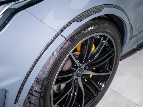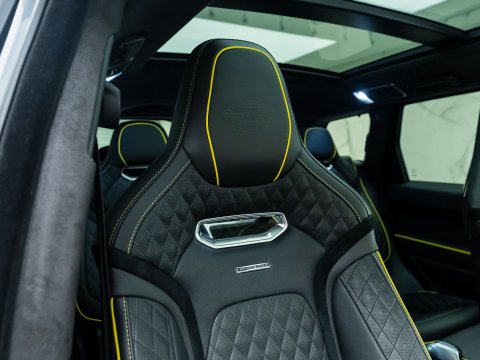 With the Range Rover Sport SVR being the top of the range and needing no additional performance, Overfinch converted a small number of SVRs by introducing an Overfinch Carbon Fibre body styling package as well as their trademark alloys and lettering. The SVR Overfinch Supersport is just 1 of 25, coming with additional features such as a full visual carbon fibre bonnet, Leggero wheels and an extra luxurious retrimmed interior. The Leggero wheels save 5.5kg and increase grip due to being 0.5-inches wider. The supercharged V8 growl can be heard through the titanium exhaust and induction system.