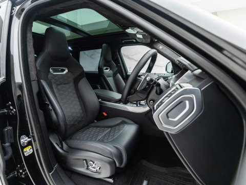 Santorini Black Metallic Paint with Ebony Leather Interior - Range Rover's Most Performance Focused Model - Desirably Equipped with Carbon Fibre Exterior Package (Ā£7,905) - Full Land Rover Service History - Land Rover Manufacturer's Warranty till December 2022 - UK SuppliedOptional Extras:22-Inch Techvipe SVR Alloy Wheels in Gloss BlackCarbon Fibre Exterior Package (Including: Exposed Carbon Fibre Bonnet + Lower Bumper Intake Surrounds + Main Grille Surround + Fender Vents + Mirror Covers + Tailgate Finisher)Fixed Side StepsHeated & Cooled Front + Rear SeatsClimate Comfort PackCabin Pre-Conditioning with Remote ControlSolar Attenuating WindscreenFront Centre Console RefridgeratorFour-Zone Climate ControlSliding Panoramic RoofEbony HeadliningRed Brake CalipersGrand Black VeneerPrivacy GlassStandard Features:60/40 Second Row Seat FoldAdaptive Cruise Control With Queue AssistAuto Dimming Exterior Mirrors & Interior Rear View MirrorAutomatic HeadlightsBlind Spot MonitorBluetooth ConnectivityBright Metal PedalsClear Exit MonitorConfigurable Ambient Interior LightingDAB RadioDriver Condition MonitorElectrical Towing PreparationElectrically Adjustable Steering ColumnEmergency Brake AssistEmergency BrakingFollow Me Home LightingFront Parking AidHeadlight Power WashHeated Steering WheelHill Descent Control (HDC)Hill Launch AssistIlluminated Aluminium Treadplates With Range Rover ScriptInControl AppsKeyless EntryLane Departure WarningMeridian Surround Sound SystemNavigation ProPower Folding Heated Door Mirrors with Approach LightsPower Gesture TailgatePremium Carpet MatsRear Traffic MonitorRed SV Brake CalipersSports SuspensionSVR Engine CoverSVR Leather Steering WheelSVR Performance SeatsTerrain Response 2 With Dynamic ProgramTraffic Sign Recognition & Adaptive Speed LimiterTrailer Stability Assist (TSA)Tyre Pressure Monitoring System (TPMS)