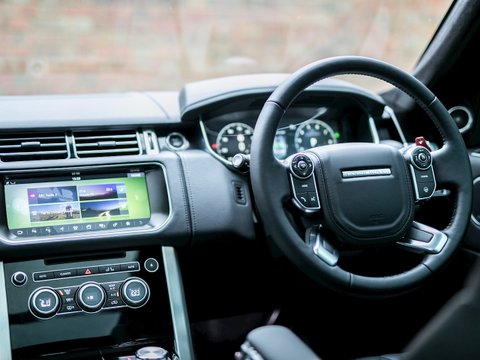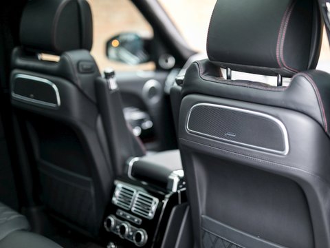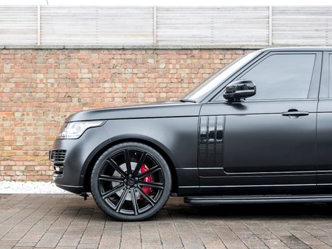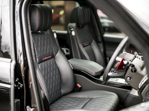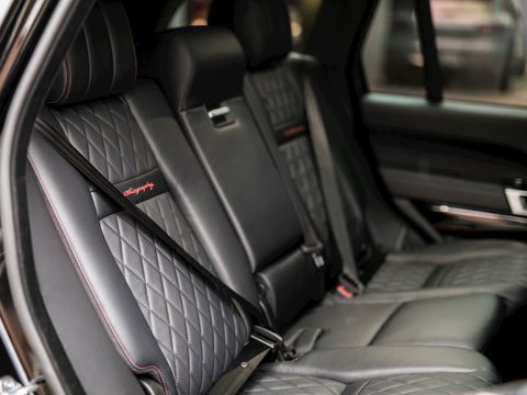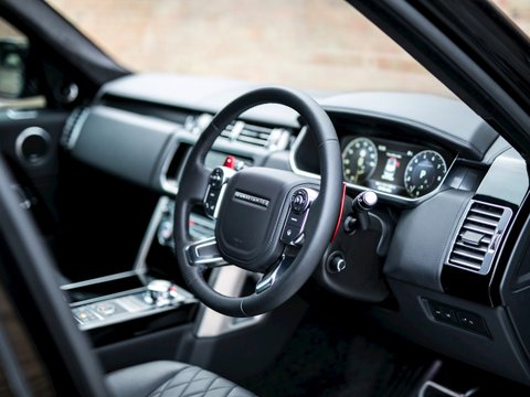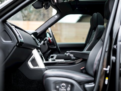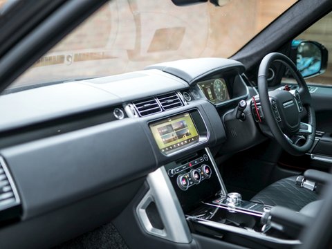 With a tuned chassis, steering, exhaust and suspension, the SVAutobiography Dynamic sits 8mm lower than a standard Range Rover with its aggressive stance hinting at the power and performance within. Signature features of the SVAutobiography over a standard 5.0 Autobiography include the re-tuned 550 bhp supercharged V8 engine with 502 lb ft of torque making it the most powerful engine in Range Rover's history. Further differences include the unique Graphite Atlas accents, distinctive Red Brembo branded brake calipers, exclusive wheels, diamond quilted leather seats incorporating Autobiography stitching and the Grand Black veneer with a distinctive alluring red keyline in front and rear door veneers.