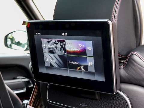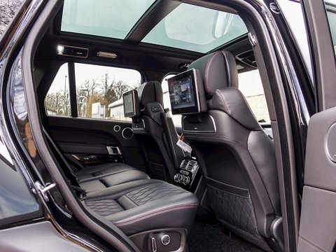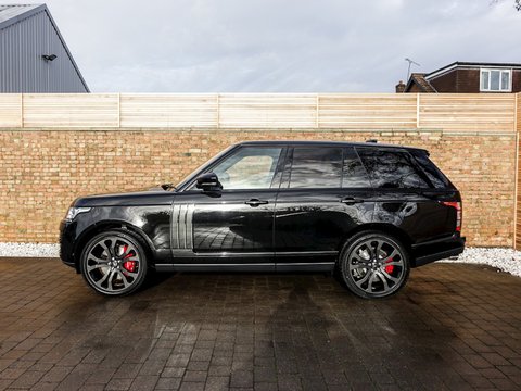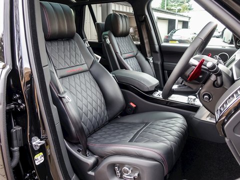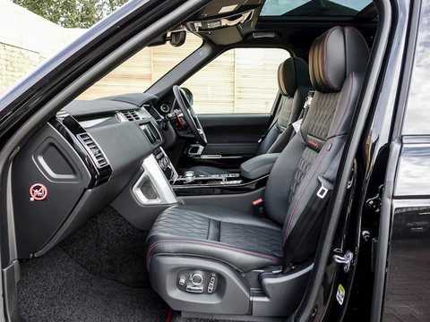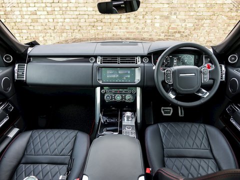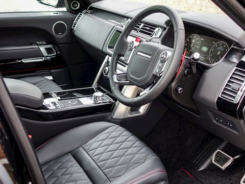With a tuned chassis, steering, exhaust and suspension; the SVAutobiography Dynamic sits 8mm lower than a standard Range Rover - with its aggressive stance hinting at the power and performance contained within. Signature features of the SVAutobiography over a standard 5.0 Autobiography include the re-tuned 550 bhp supercharged V8 engine and 502 lb ft of torque making it the most powerful engine in Range Rover's history. Further differences include the distinctive Red Brembo branded brake calipers, exclusive wheels, diamond quilted leather seats incorporating Autobiography stitching and the Grand Black veneer with a distinctive alluring red keyline in front and rear door veneers.