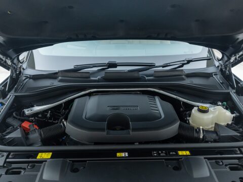 Inside, the latest Pivi Pro touchscreen is larger than before, offering responsive haptic feedback for an intuitive user experience. The classic physical HVAC dials remain, ensuring ease of use without overcomplicating things. The gear selector has been redesigned, replacing the previous cylindrical model with a more streamlined option. Technology in the new Range Rover is state-of-the-art. A prime example is the 48-volt anti-roll bars, which communicate directly with the navigation system, allowing the car to anticipate sharp turns ahead. Rear-wheel steering is now standard, making it easier to maneuver the vehicle’s substantial size in tighter spaces.