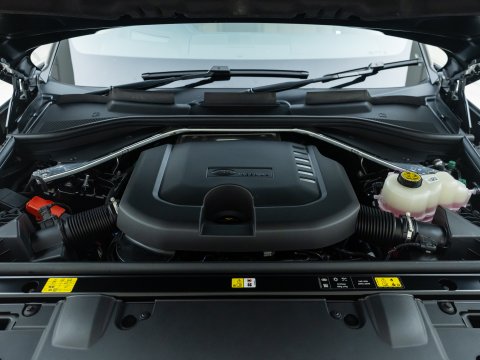 This particular example features the D350 diesel engine, the straight six carried over from the previous generation. This engine offers 345 bhp and a top speed of 145mph with more than enough shove to manoeuvre the car out of most tight off-road spots. Being the long wheelbase version, there is extended leg room for the middle row over the standard wheelbase car and the electric folding nature allows easy access to the 2 rear seats on the third row making this an extremely practical and spacious family cruiser.
