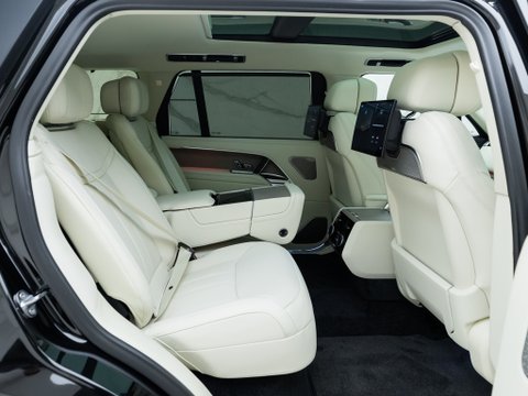 This example is the long wheelbase variant which combined with this engine choice is one of the rarest and most desirable versions of the new Range Rover. Due to the battery placement on the plug-in hybrids there is no 7 seat version available with the benefit of this meaning all LWB plug-in hybrids feature the executive rear seats with the electric deployable centre armrest and rear seat touchscreen controller. With the extra leg room on offer on the LWB the serenity of the quieter hybrid engine is perfectly suited to those that like to be chauffeur driven and travel in absolute luxury and style.