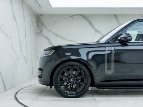 This particular example is the P510e First Edition. The First Edition is on par with the Autobiography trim level, with an array of desirable features as standard, including Executive Rear Seats. The Executive Rear Seats feature a rear centre console that folds down and hosts additional features via a large touchscreen display, where you are able to fully recline the rear seats and access the rear climate control ā as well as revealing twin cupholders. The boot features an electrically folding parcel shelf and a boot floor that can be propped up to be used as a back rest whilst you sit on the tailgate. Range Rover are back with the pinnacle of SUV luxury with their flagship model.