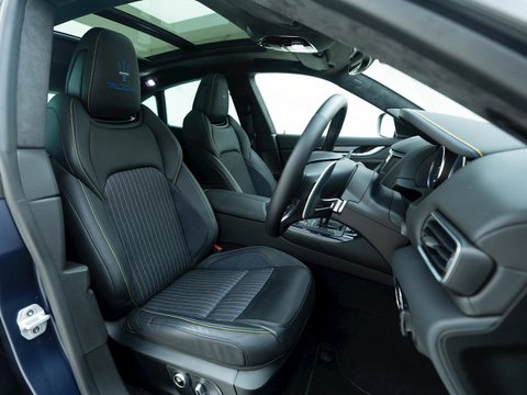 This particular example is the MC Edition which celebrates their heritage by the application of unique and bespoke colour and trim choices that relate to the history of the home of Maserati, Modena. This means you get a variety of trim levels and engine options to play with. Included on this specific car are the special 3-layer paint, blue carbon fibre interior inlays and yellow/blue stitching. MC Edition badging and stitching completes the unique interior look.