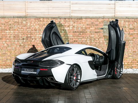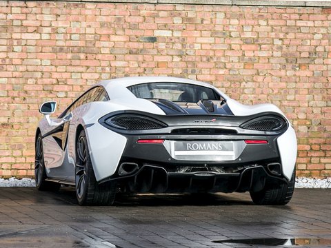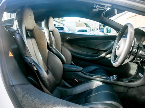 Romans are proud to offer this incredible 2015/65 McLaren 570S for sale presented in 'Silica White' with Carbon Black Leather Interior. This beautiful example comes with a lovely specification including the Security Pack which includes the Vehicle Lift. Furthermore, this car comes with the Carbon Fibre Switch Pack, the great sounding Sports Exhaust and McLaren 8 Speaker Audio System. This car has also just been Serviced by McLaren and comes with Paint Protection Film (PPF) applied to the Front Bonnet and Wings. Finally, this car is supplied with McLaren Manufacturer's Warranty Until December 2018.