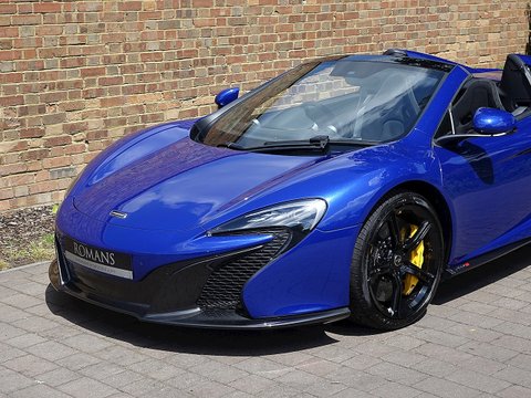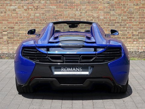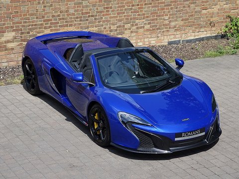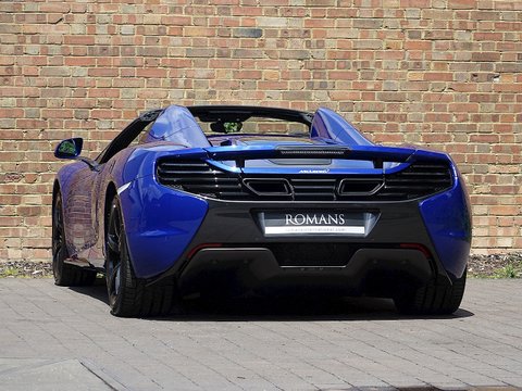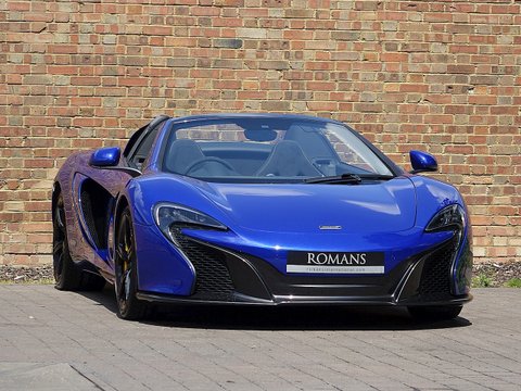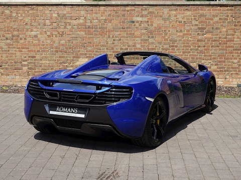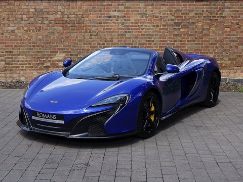 Romans are delighted to offer this exquisite 2014/64 McLaren 650S Spider for sale presented in 'Aurora Blue' Special Paint with Carbon Black Alcantara Interior. This fine example comes with a fantastic specification including the rare £5/,000 Carbon Fibre Racing Seats/, Vehicle Lifter and so much more. Furthermore/, this vehicle comes with the added benefit of a Full Paint Protection Film applied to the whole car by Topaz Detailing. Finally/, this car is supplied with McLaren Manufacturer's Warranty until November 2017. We believe this to be one of the best looking and best value supercars on the market.The 650S Spider is the supercar for all occasions. With it's incredible supple suspension that's extremely comfortable on long journeys but at the push of a button can be stiff enough to set incredible lap times; the 650S Spider is a truly wonderful car. With the added bonus of putting the roof down to get closer to that exquisite V8 soundtrack/, this 650S Spider is a stunning machine especially with the Aurora paint that sparkles in the sun and contrasts beautifully against the gloss black alloys.