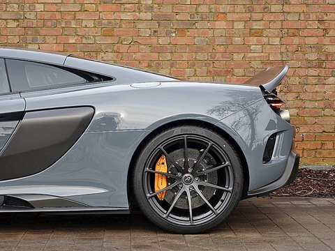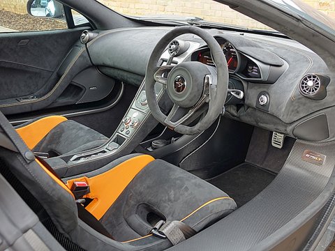 Romans are proud to offer this extraordinary 2015/65 McLaren 675LT for sale presented in 'Chicane Grey' with Black/McLaren Orange Leather Alcantara Bucket Seats. This stunning UK Supplied example comes with a massive specification including the very desirable Club Sport Professional Pack, Vehicle Lift, Carbon Fibre Louvered Front Wings, Meridian 10 Speaker Sound System Upgrade and much much more!The McLaren 675LT is the lightest, most driver-focused, most exclusive series-production supercar the company has ever built. The 1997 McLaren F1 GTR 'Longtail' was the ultimate evolution of the Le Mans-winning F1 GTR. Almost two decades on, the limited-edition 675LT follows it's uncompromising ethos to create a visceral driving experience of unique intensity.Inspired by the McLaren F1 GTR 'Longtail', the 675LT features striking carbon fibre bodywork that increases downforce by an astonishing 40% over any other model in the Super Series. Performance is similarly astounding. The re-engineered M838TL V8 twin-turbocharged engine produces 666bhp (675PS hence the car's name) and 516lb ft which is an increase of 25bhp and 16lb ft over the 650S. McLaren say the seven-speed dual-clutch gearbox is now twice as fast. It briefly cuts the ignition between changes creating the fastest possible shift and an incredibly intense sound. The result is not only increased performance but a heightened sense of connection for the driver.The new lightweight titanium exhaust system instantly differentiates the 675LT, thanks to it's distinctive twin exhaust outlets and uniquely rich, aggressive sound, particularly under full acceleration. But the lightweight exhaust system also plays a crucial role in unlocking the 675LT's additional performance.The carbon fibre MonoCell provides the 675LT with an unrivalled combination of lightness, safety and stiffness, in common with all models in the McLaren Super Series. But an obsessive weight-saving strategy unlocks a further 100kg reduction compared with the 650S. From the lightweight carbon fibre racing seats to a 1mm thinner windscreen, no opportunity to save weight has been overlooked.Ultra lightweight forged alloys, carbon ceramic brakes and an uprated suspension system that embraces technology from the McLaren P1 also contribute to the radical specification.